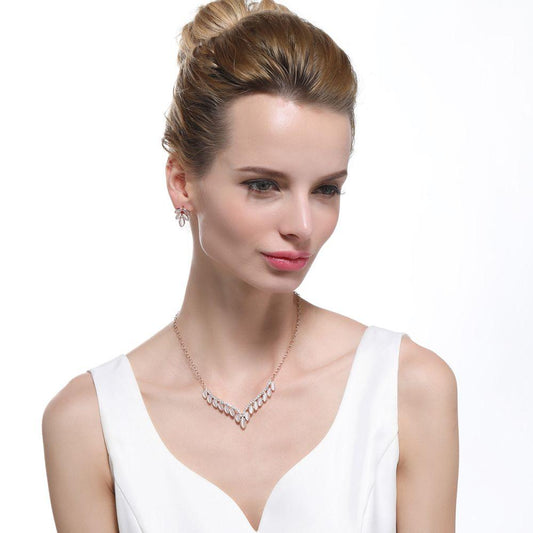 Bright White Cubic Zircon Necklace and Stud Earrings Set