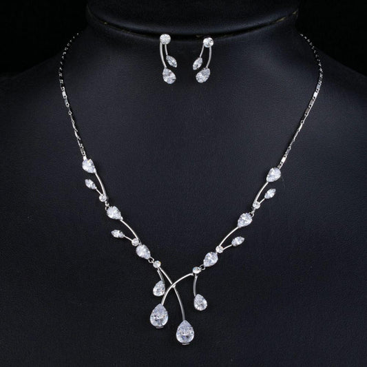 Elegant Princess Clear Waterdrop Cubic Zirconia Drop Earrings and Necklace Jewelry Set
