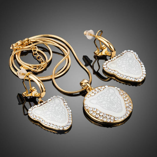 Snow White Waterdrop Pendant Necklace + Drop Earrings Set