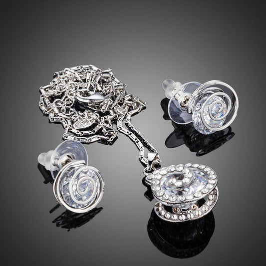 Snail Shaped Crystal Stud Earrings + Necklace Set
