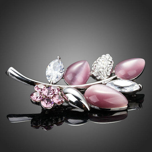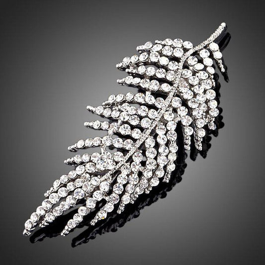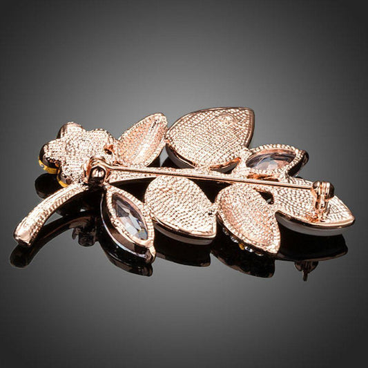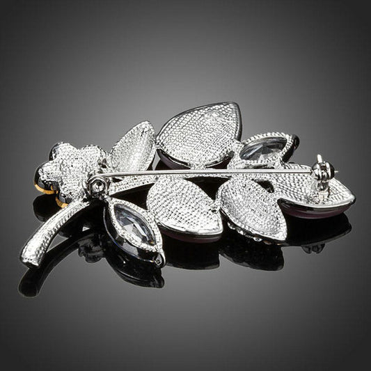 Clear Cubic Zirconia Artistic Leaf Flower Brooch