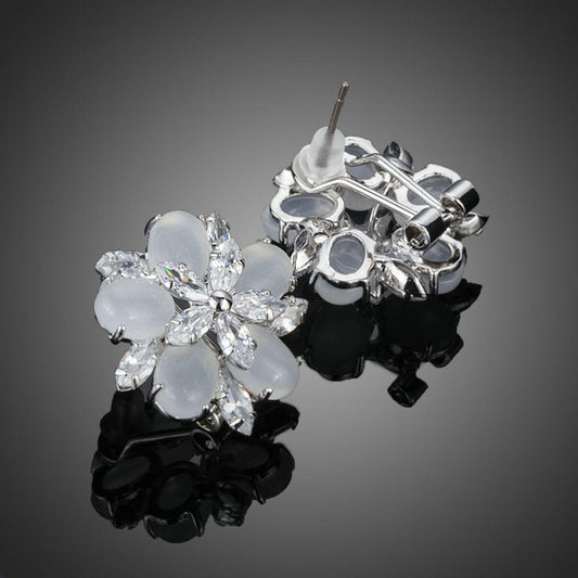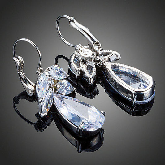 Flower Star Shape Cubic Zirconia Drop Earrings