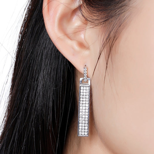 Rectangle Paved Cubic Zirconia Dangle Earrings -KPE0328