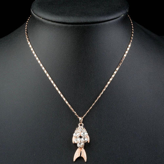 Golden Fish Design Crystal Pendant Necklace KPN0133