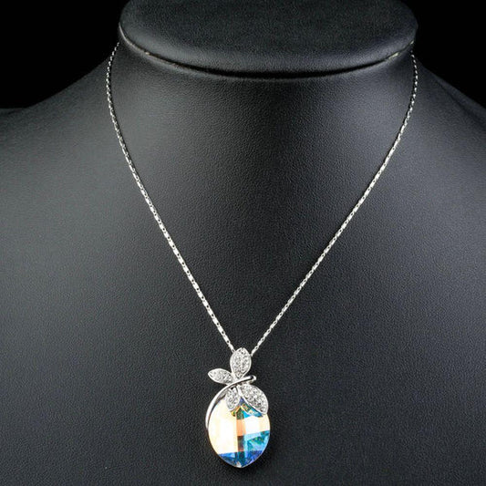 Butterfly on Autumn Leaf Crystal Pendant Necklace