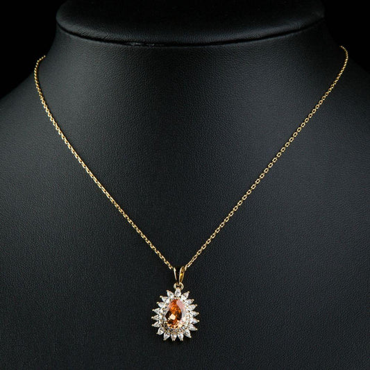 Champagne Cubic Zirconia Sunflower Pendant Necklace KPN0227