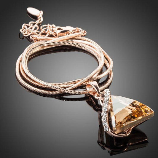 Champagne Austrian Crystals Heart Shaped Pendant Necklace Rhinestone Vintage Fashion Jewelry