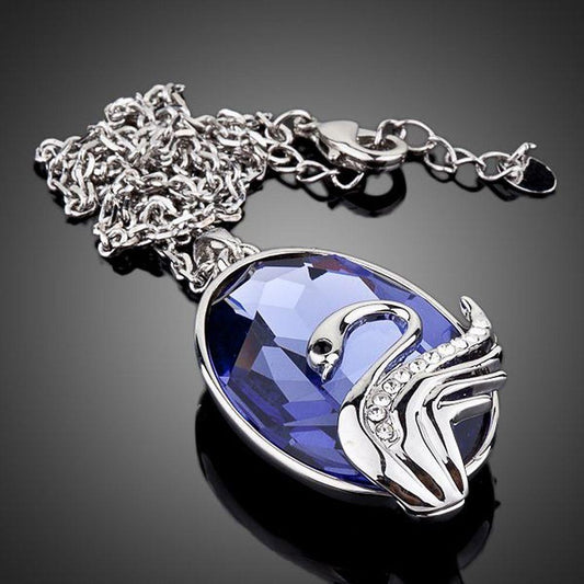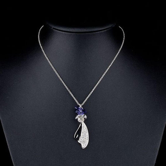 Blue Resin Elegant Copper Clear Austrian Crystal White Gold Pendent Necklace