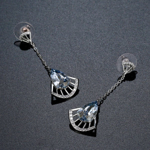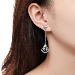 Type \ Shape \ Pattern: Fan Shape Drop Earrings for Women White Gold Jewelry