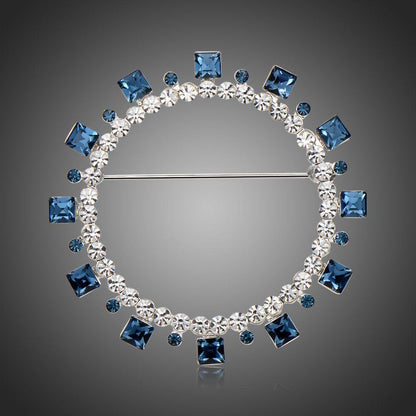 Blue Square Austrian Crystals Geometric Brooch -KFJB0108