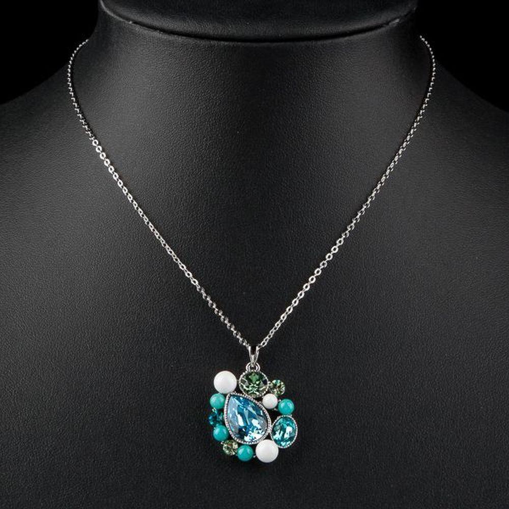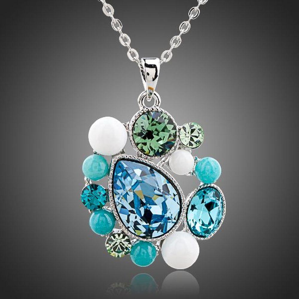 Blue Tear Drop Stellux Austrian Crystal Necklace KPN0104