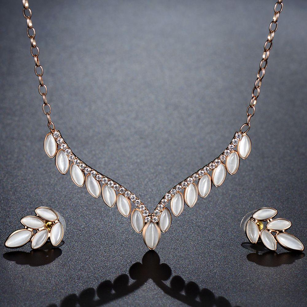 A stunning jewelry set is like a compliment to your gorgeous outfit on any special day. You whole look and style will look incomplete without the shine of jewelry. To make everything even more attractive we have brought this cat’s eye stone antler cubic zirconia wedding jewelry set.