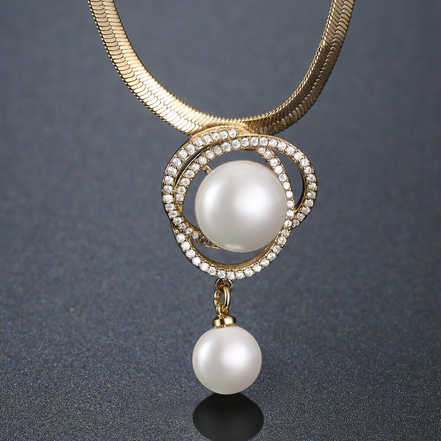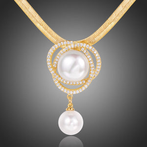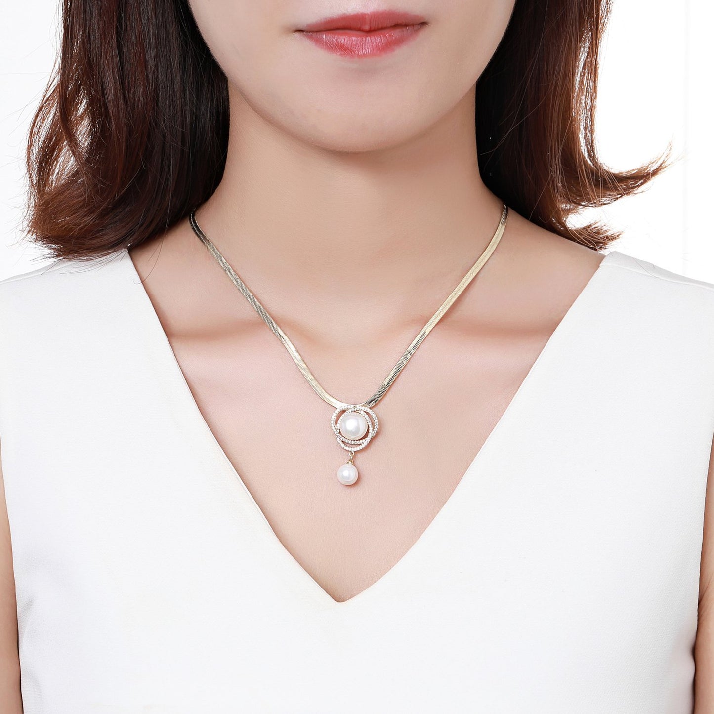 Cubic Zircon Pearl Flower Necklace KPN0261