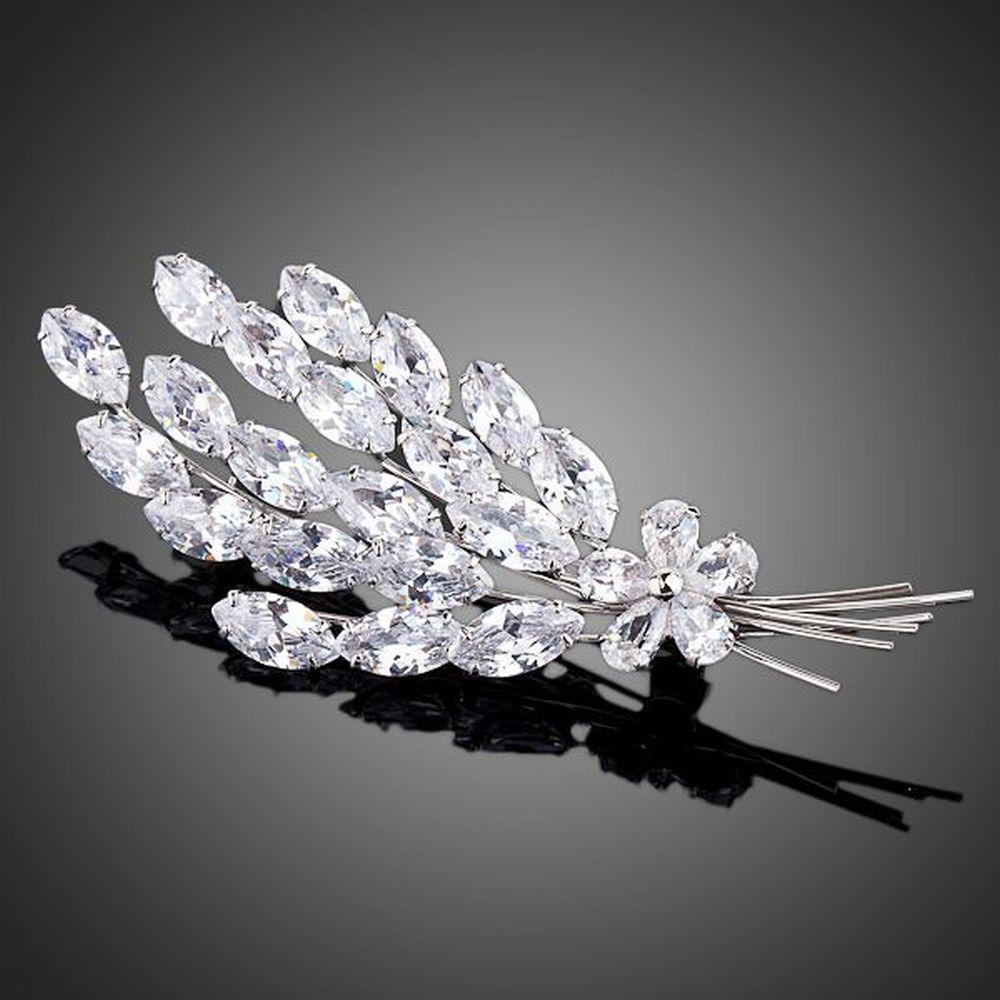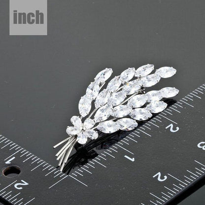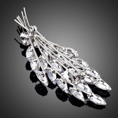 Cubic Zirconia Feather Design Brooch Pin