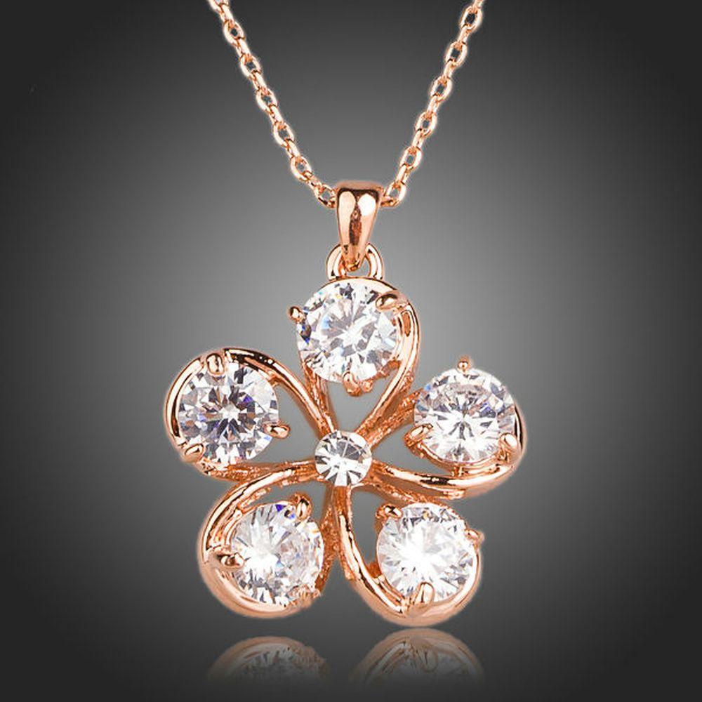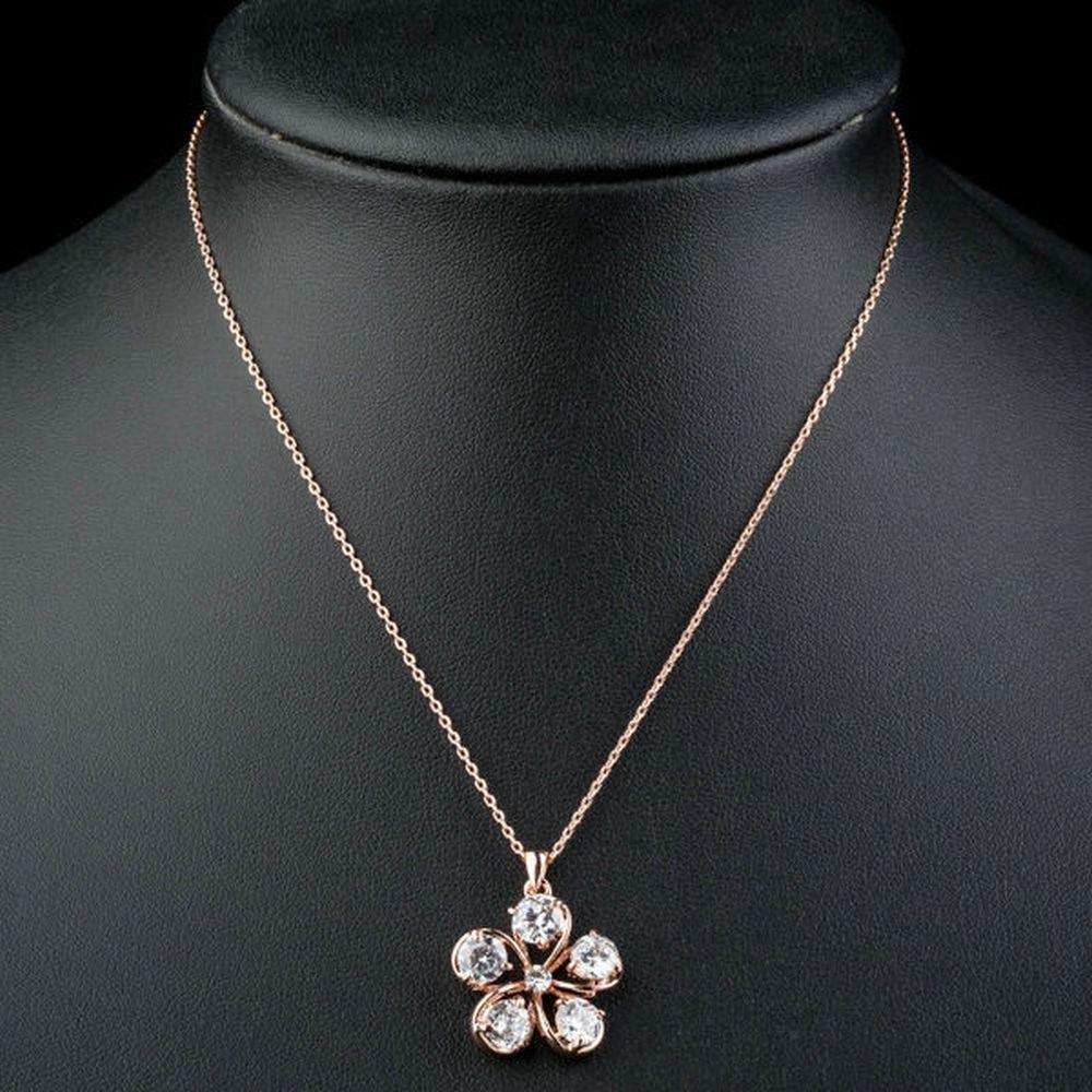 Cubic Zirconia Flower Pendant Necklace