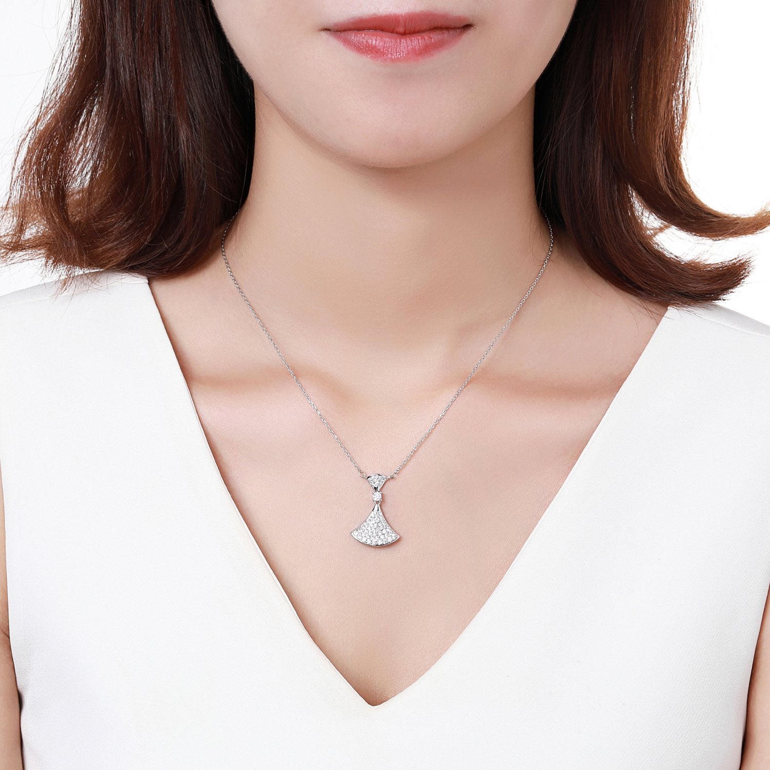 Cubic Zirconia White Gold Pendant Necklace KPN0252