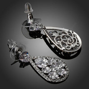 The unique designed Driblet down under the leaf clear cubic zirconia drop earring is now here for the taking. With amazing clear cubic Zirconia on top and dew drop shape makes it highly attractive and fashionable. This drop earring has a water drop pattern and an extremely unique design which makes it highly attractive.