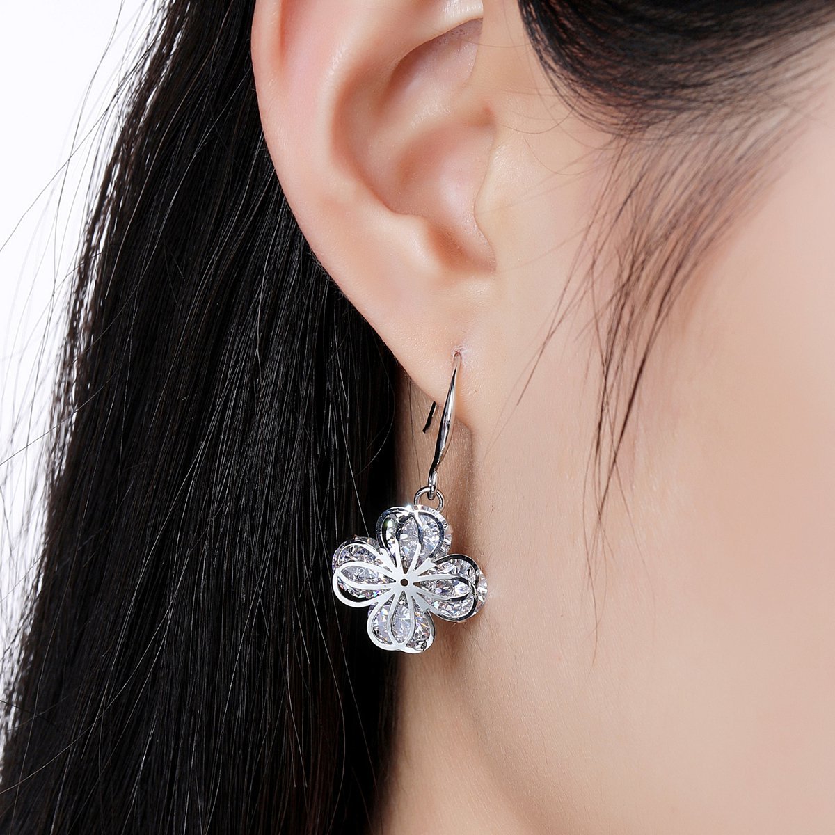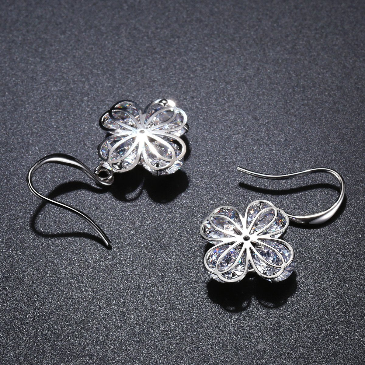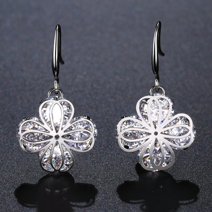 Flower Cubic Zirconia Drop Earrings -KPE0330