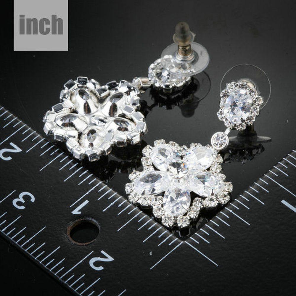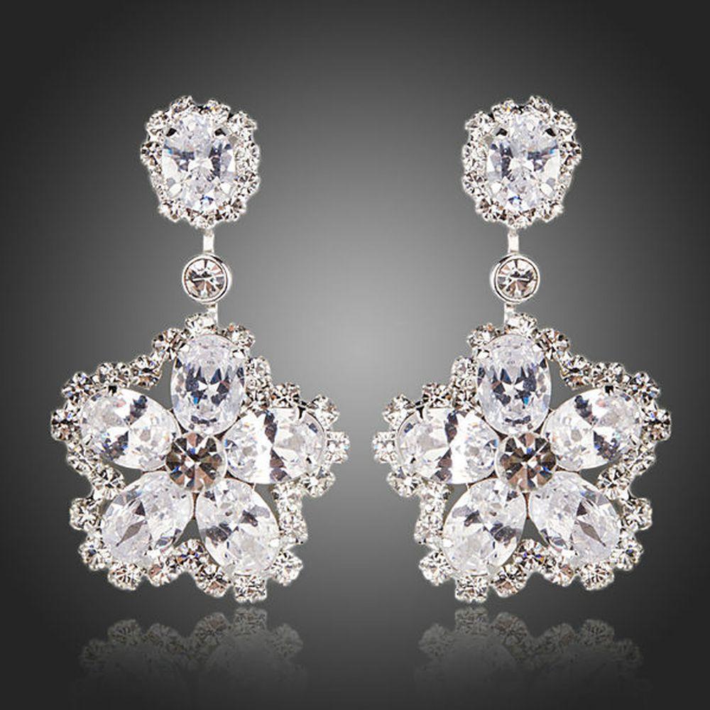 Flower Star Shape Cubic Zirconia Drop Earrings