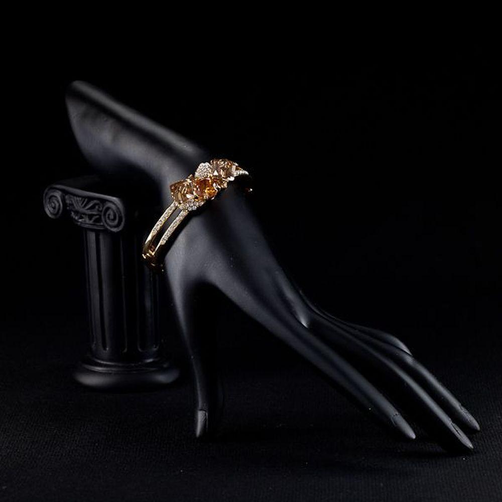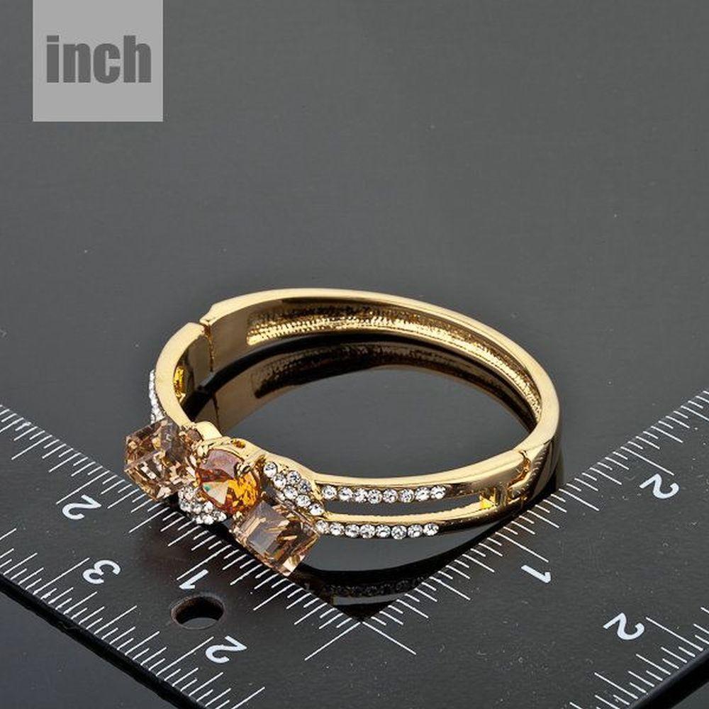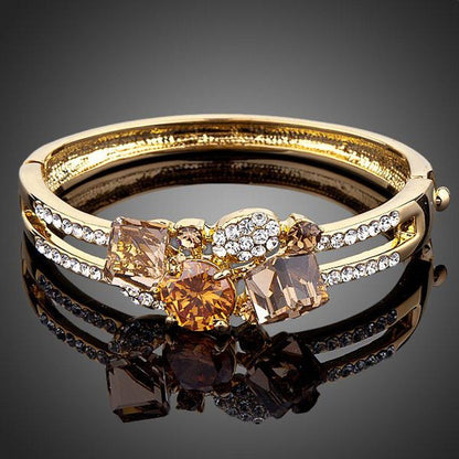 The classic dazzling beauty of this bracelet comes from the artistically tension mounted Stellux Austrian Crystals and Rhinestone on the main structure with 18K gold plated Zinc Alloy body. This elegant fashionable bracelet is supposed to be the ultimate choice with your fashionable get up. It weighs only 31.66g.