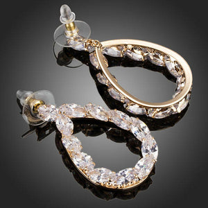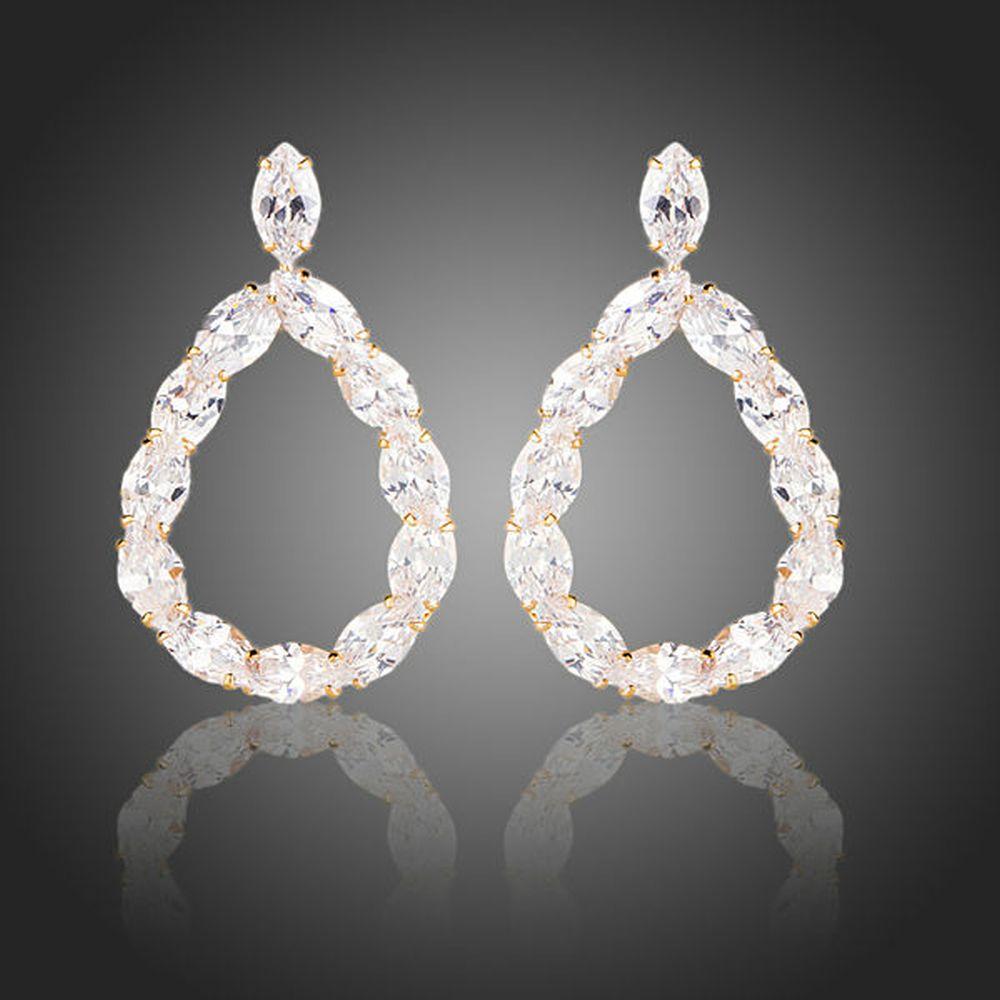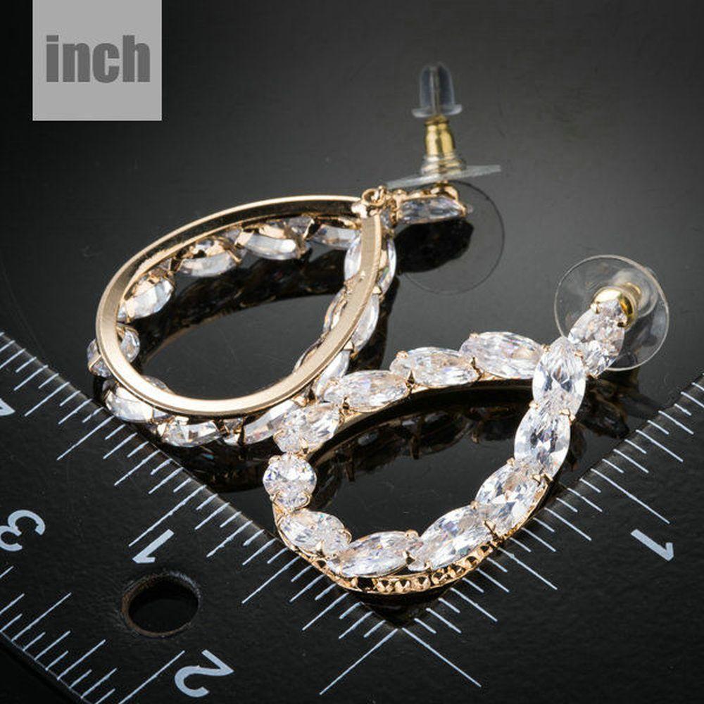The earring is made up of copper for durability and weighs 12.66 grams. The earring is free from nickel, cadmium and lead for skin protection. This romantic earring is Gold plated to give it a luxurious touch, with water drop pattern crystal for shiny outlook.