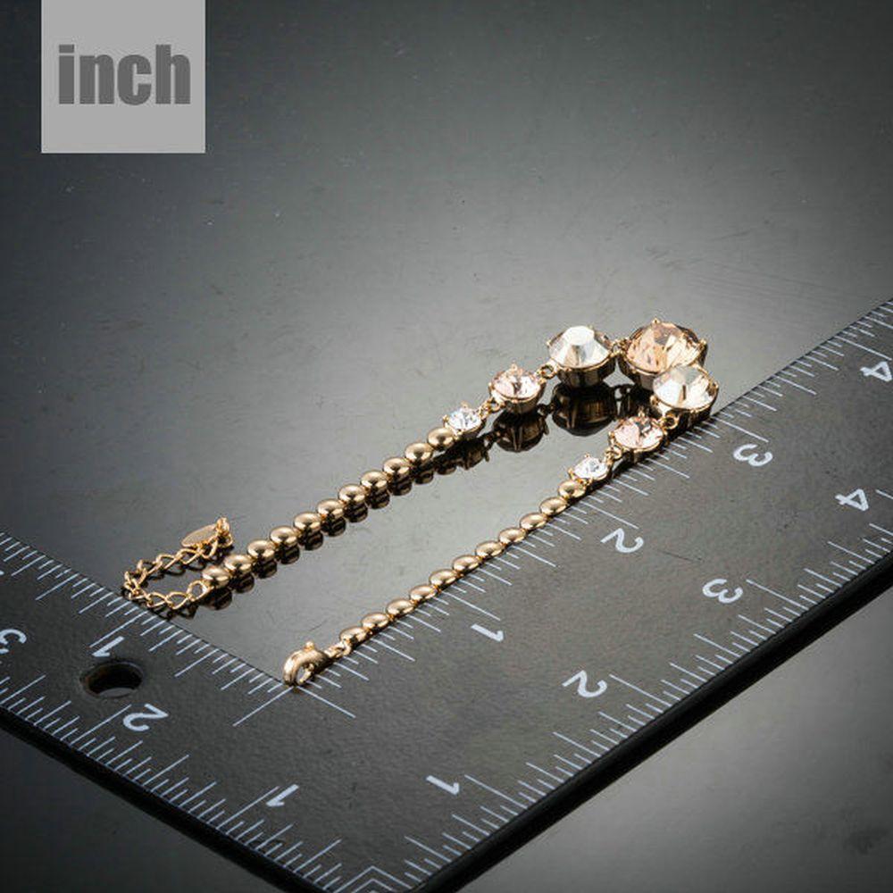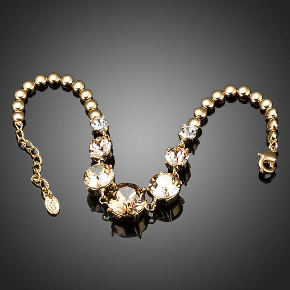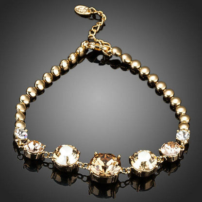 You are pretty and beautiful. Our stunning zirconia charm bracelet will add more to your look. The round shaped top quality CZ stone on the copper body made the bracelet very lightweight. The gorgeousness of the center stones along with gold plated prongs goes perfectly with your any special occasion like wedding, engagement, party, dinner or anywhere else. It weighs only 10.2 g.