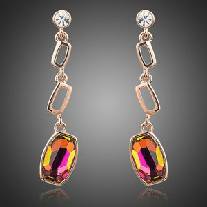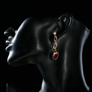 Presenting the Gold Plated Lamé Curved Crystal Drop Earrings, with incredible Gold plating on top for an extravagant look. The earring’s main stone is Stellux Austrian crystal for a magnificent gleam and luxurious look. The earring has a geometric pattern which is perfect for those who have a taste for different designs.