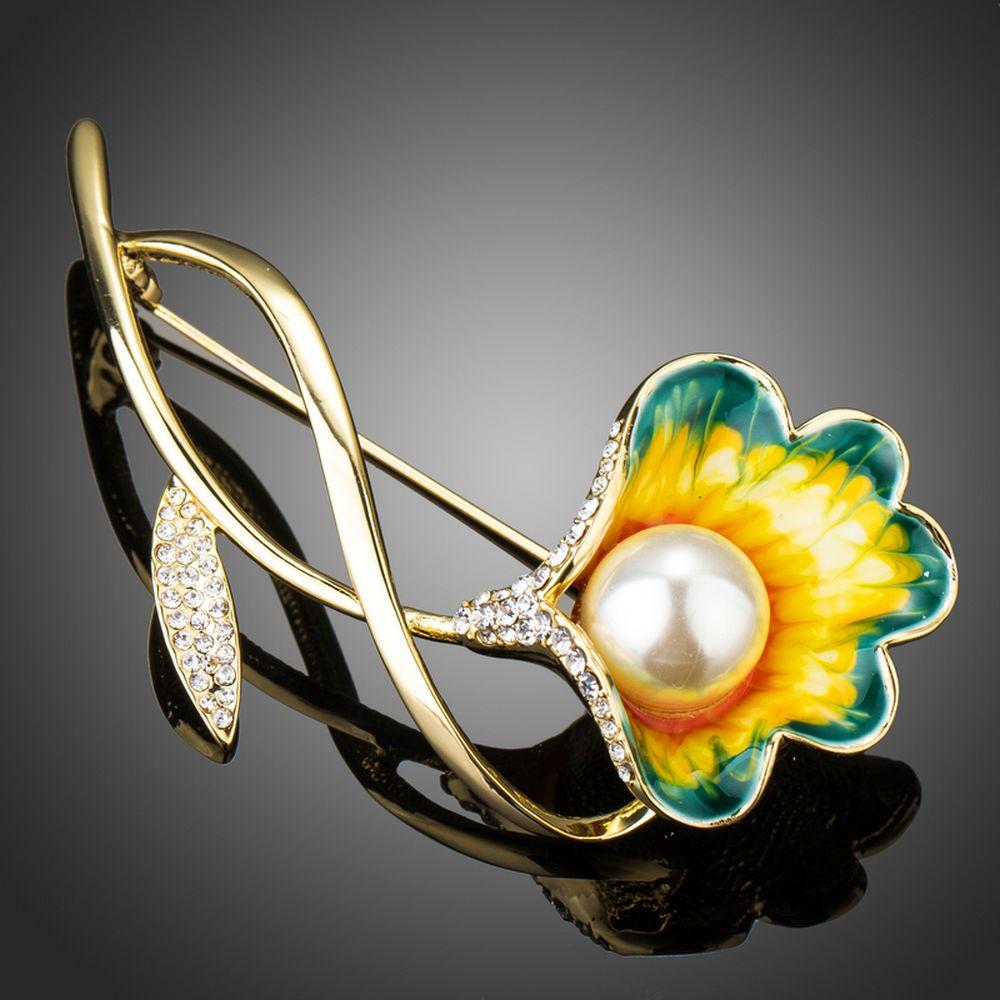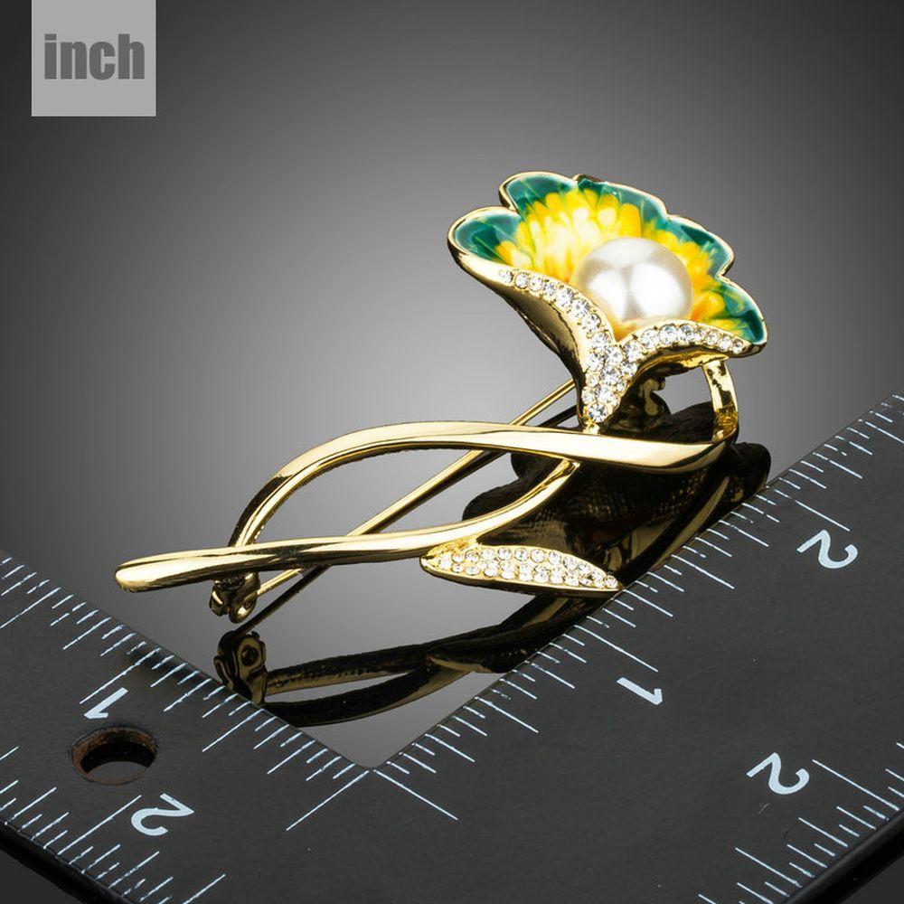 Golden Tree Branch Simulated Pearl Artistic Flower Brooch