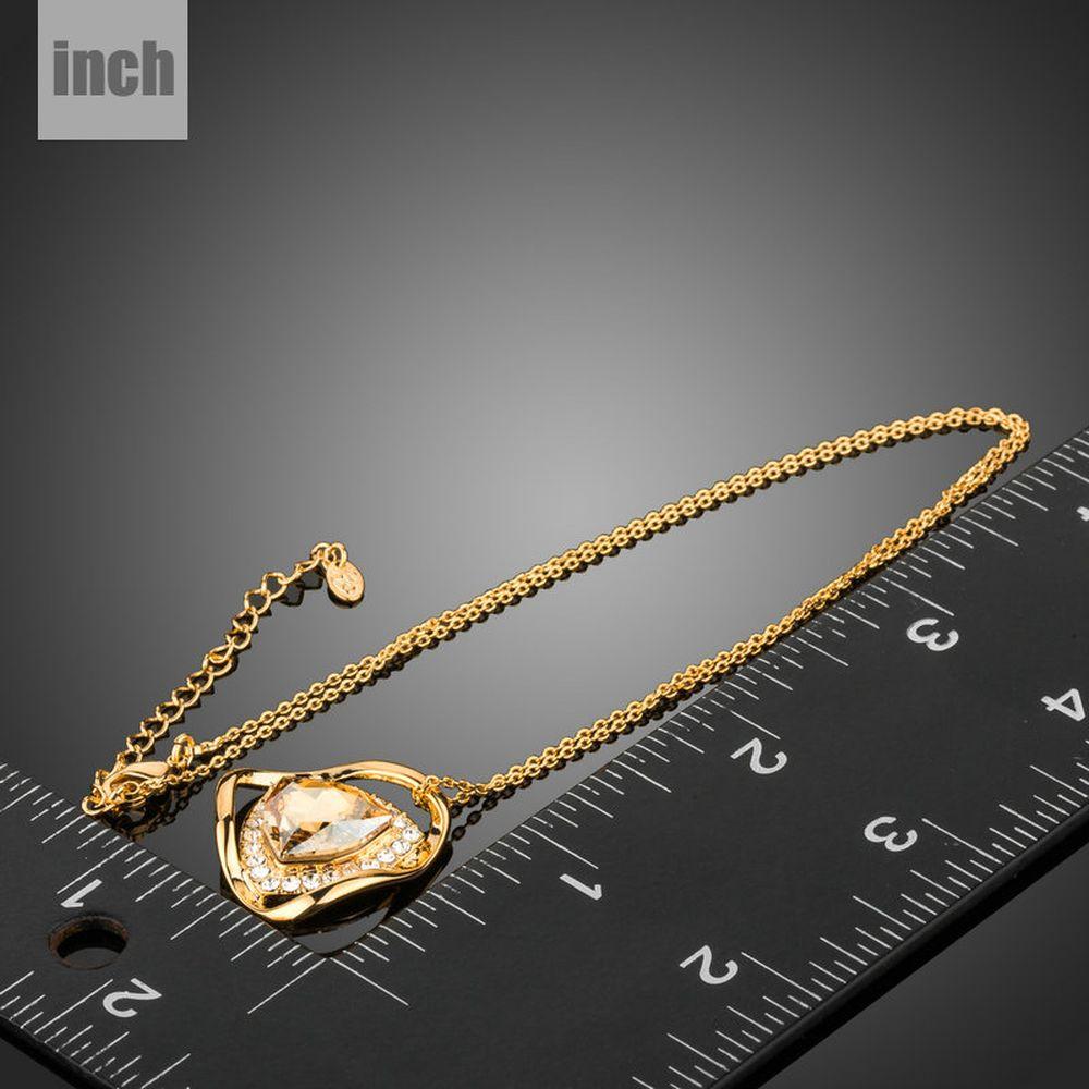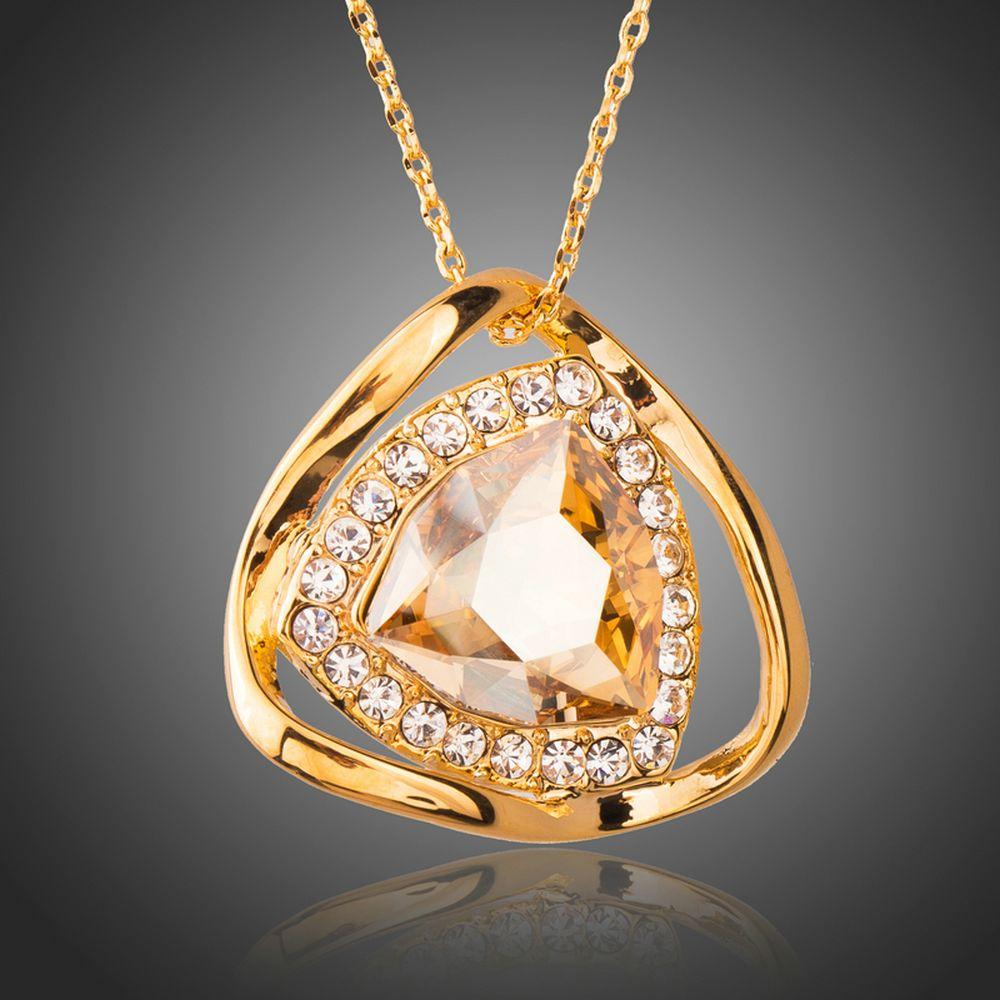 Be noticeable in a crowd with this trendy fashionable golden pendant for women. This piece of jewelry is specially made with the gorgeous big champagne colored Austrian Crystals Pendant that enhances its beauty. The whole pendant is 18K gold plated and has very fine polished.
