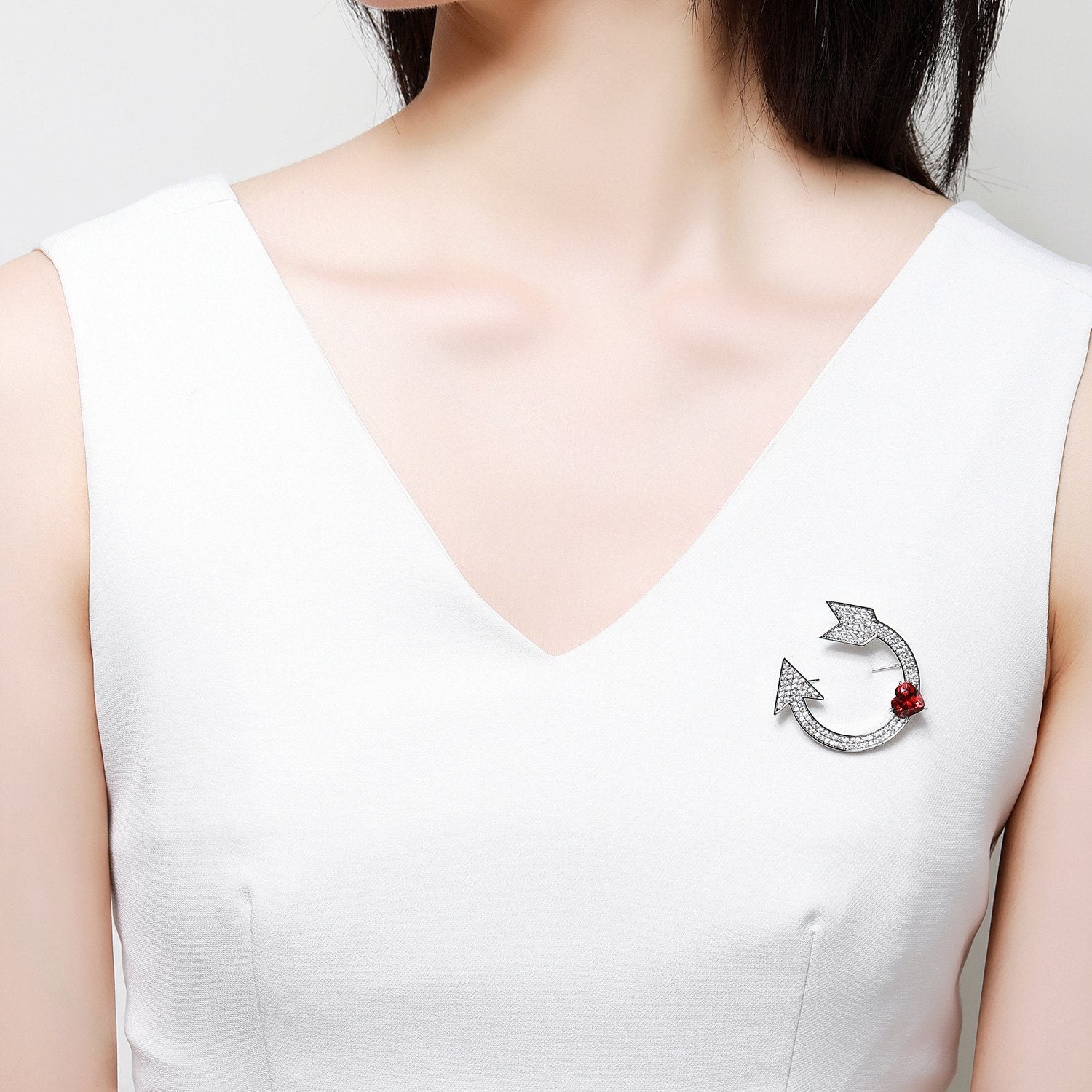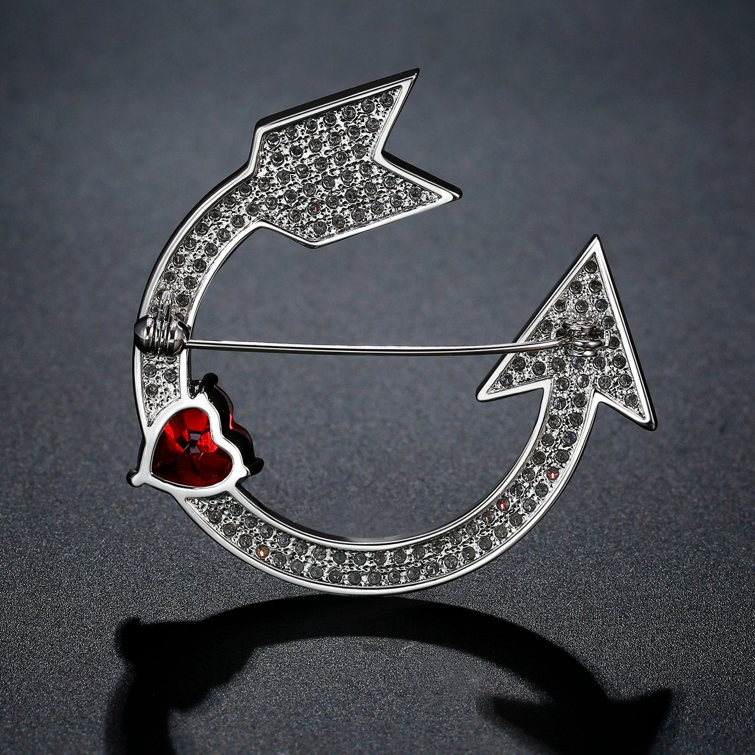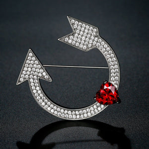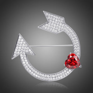 Heart Cut Red Cubic Zirconia Arrow Brooch