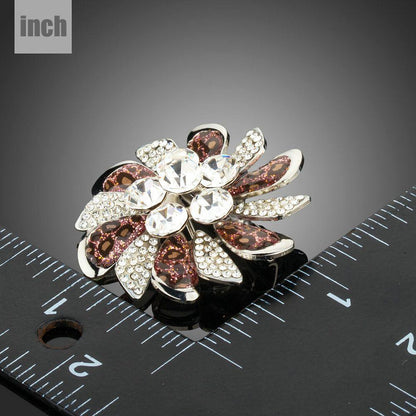 This piece of art is made of genuine Austrian Rhinestones and Zinc Alloy, weighing only 13.02 g. The plant shaped gorgeous brooch looks awesome because of its 3 times fine polished mirror finish white Gold plating.