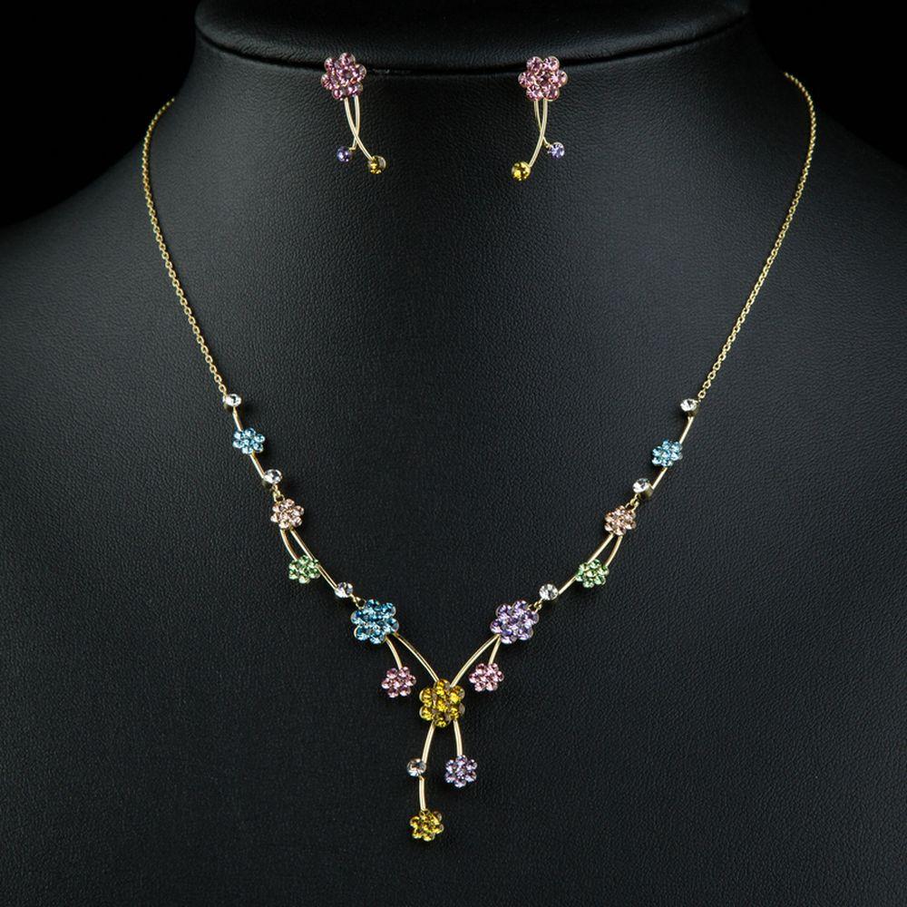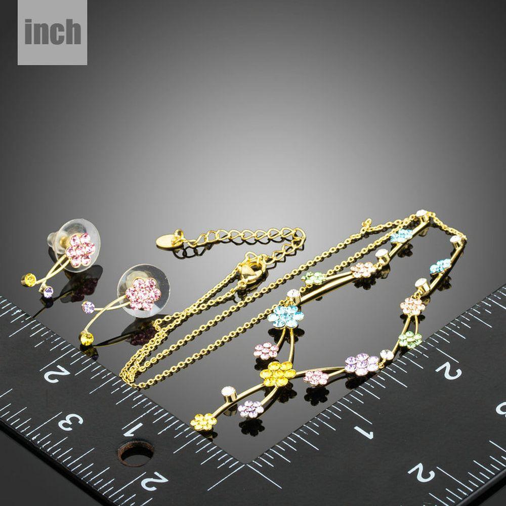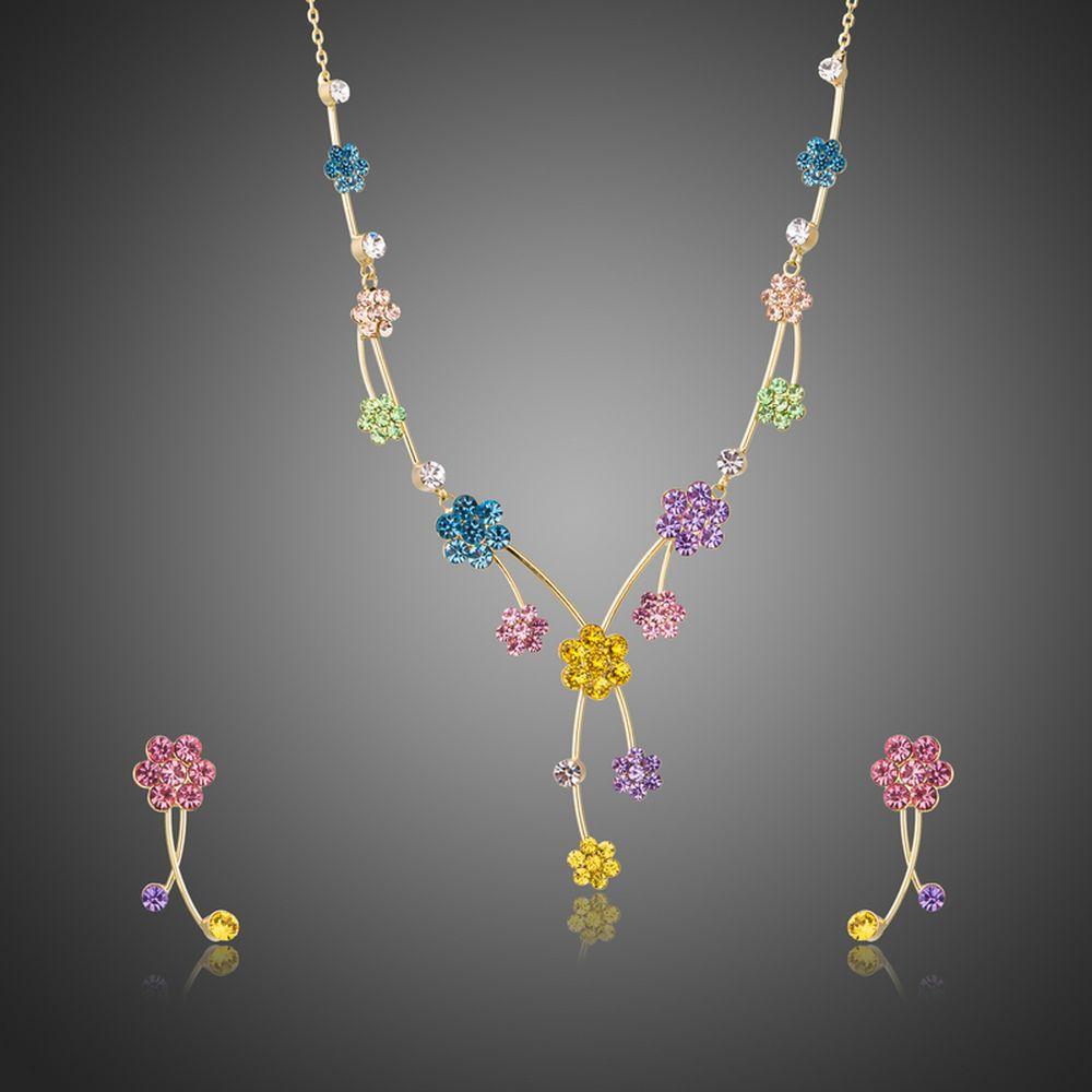 Multicolor Crystals Flower Tree Branches Jewelry Set