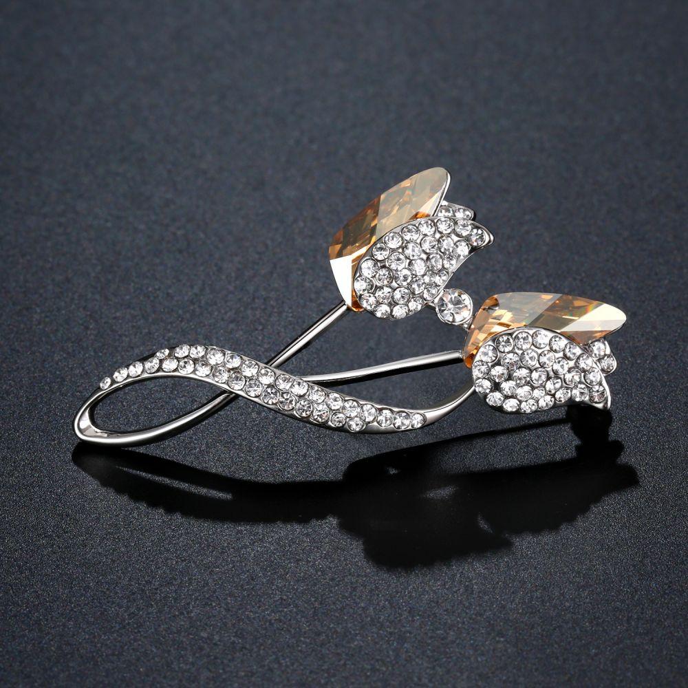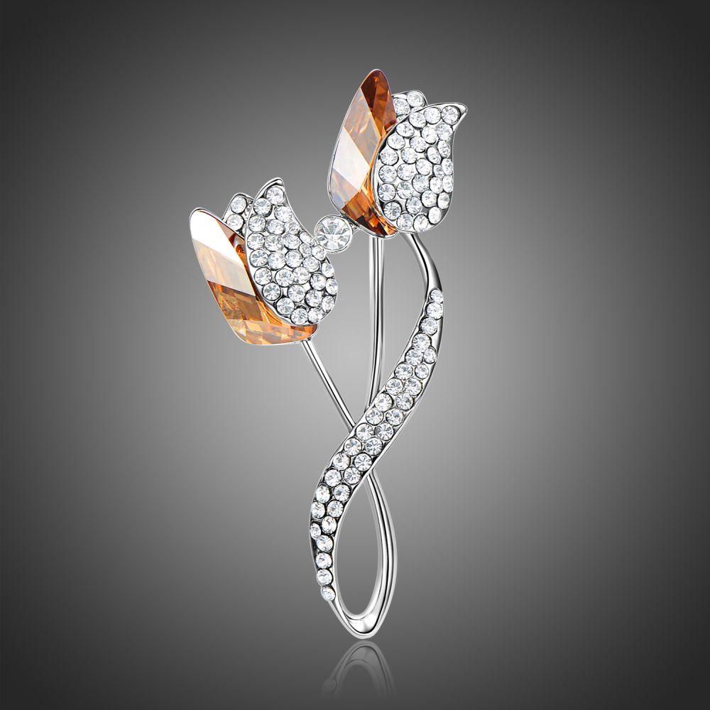 Rhinestone Champagne Austrian Crystal Double Lotus Brooch