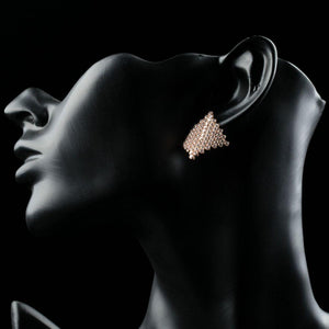 Do you want to make your life more colorful? We have to make your life more colored. This rose gold color earrings copper has matt finishing gold plating that gives the perfect shine. The feather pattern earrings is ornamented with top grade cubic zirconia stones. This earring weight is 6.8 g.