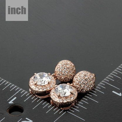 This fashion Earring is made up of pure Zinc Alloy metals and semi-precious material. A great choice for giving as a gift. This rose gold two pieces cubic zirconia and rhinestones drop earring brings you a lot of compliments and praise so don’t wait to order now.