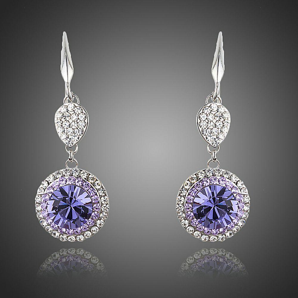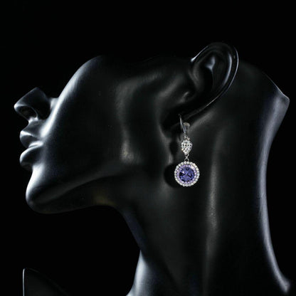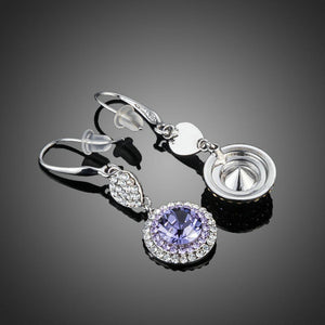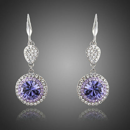 Round Purple Cubic Zirconia Drop Earrings