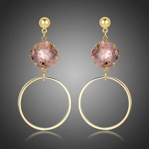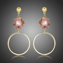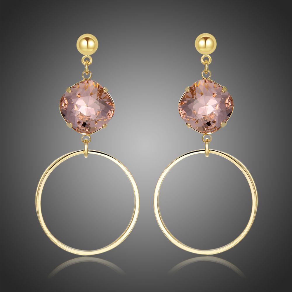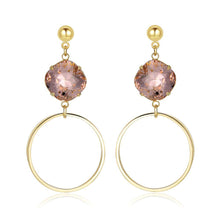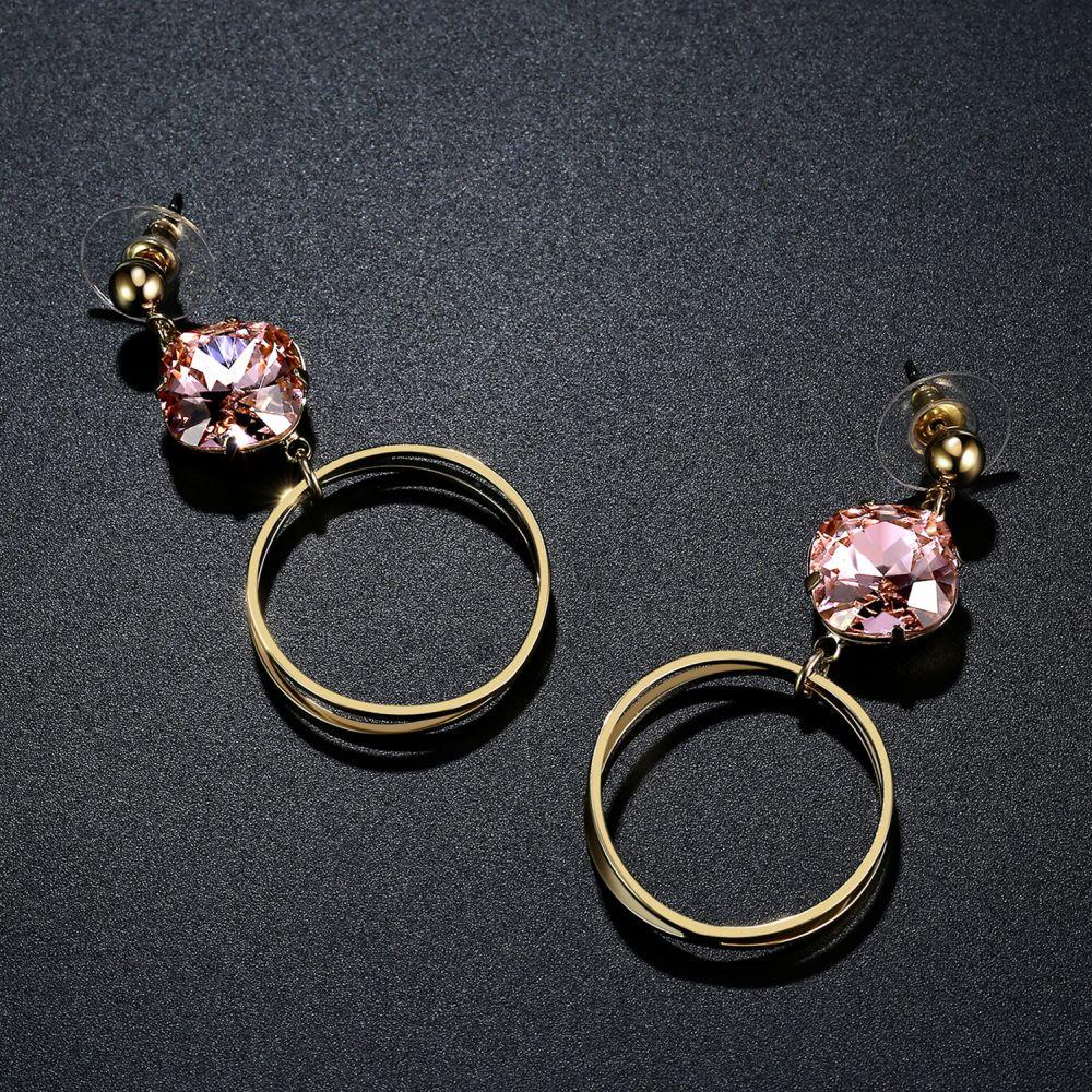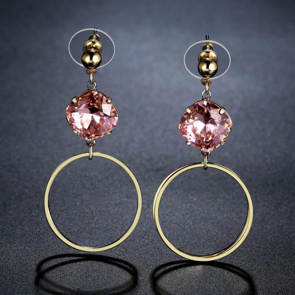 Type \ Shape \ Pattern: Pink Austrian Crystals Circle Drop Earrings for Women Gold Jewelry