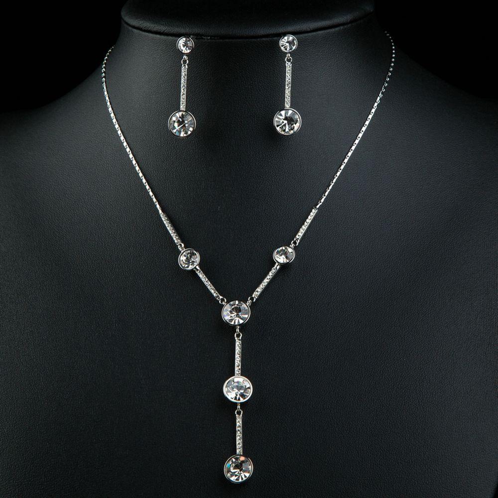 White Gold Classic Y Style Clear Crystal Jewelry Set